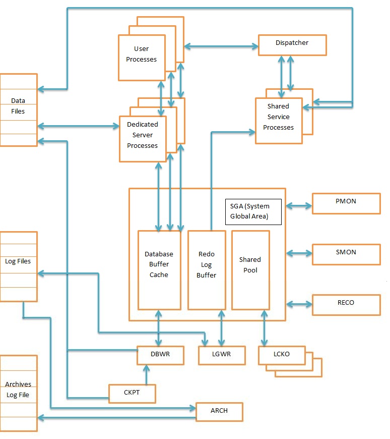 Another oracle processes used to perform various tasks in RDBMS sys. These tasks may vary from communicating with other Oracle instances & performing sys. maintenance and cleanup to writing dirty blocks to disks.